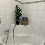 Ferienwohnung Rene有1间卧室. 公寓内1间浴室配有步入式淋浴间,独立卫生间 和浴缸.